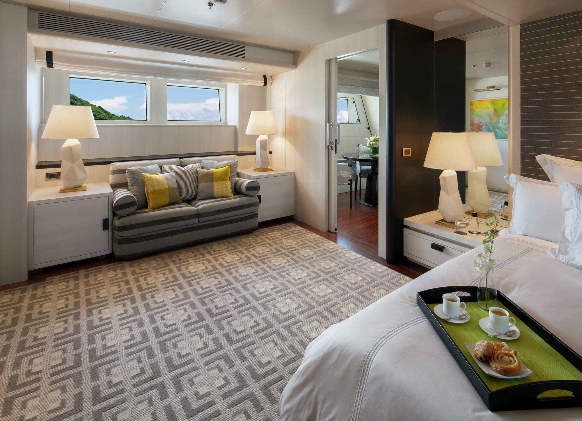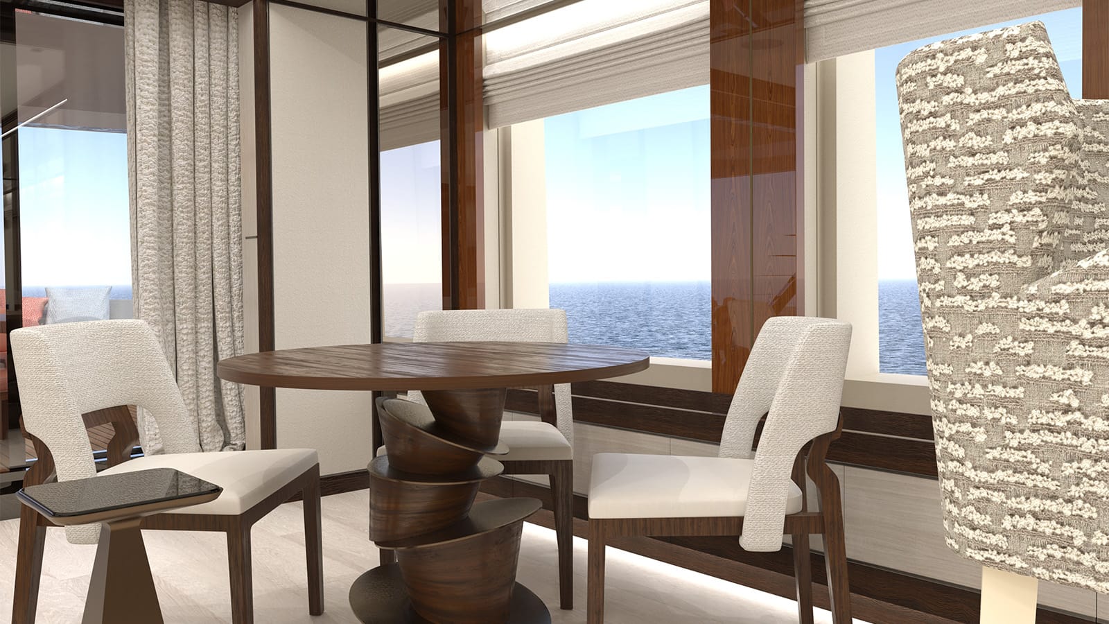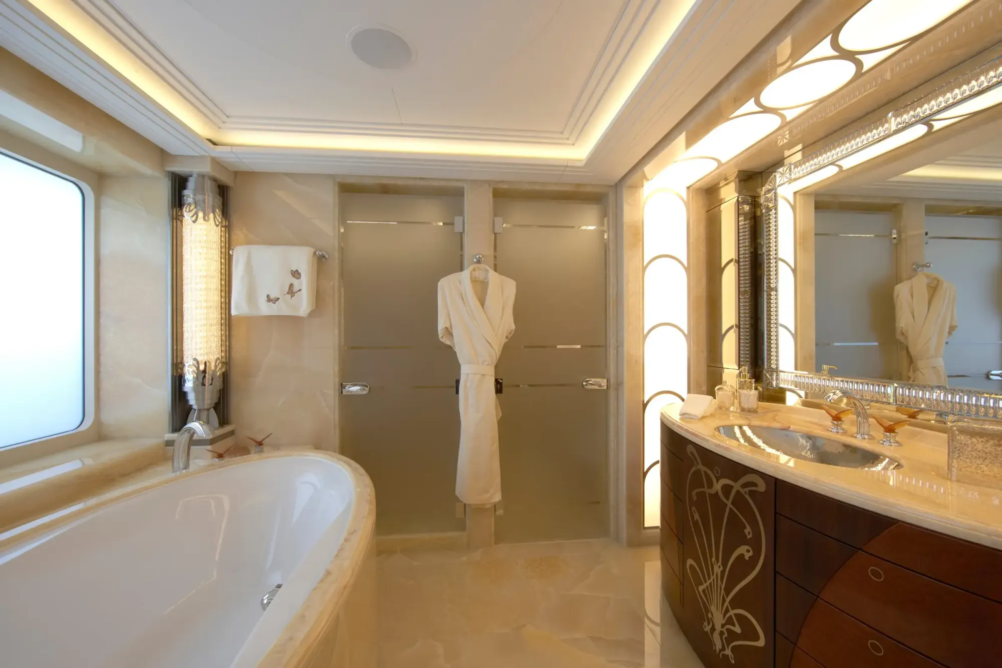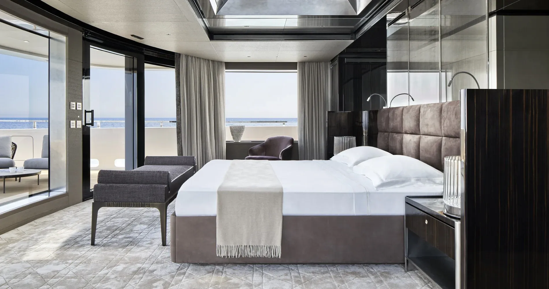 Accommodating up to 12 guests, Amaryllis features a magnificent master stateroom with an exclusive private owner’s deck, complete with panoramic windows providing uninterrupted 180-degree views.