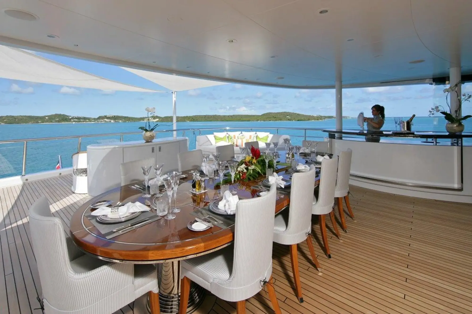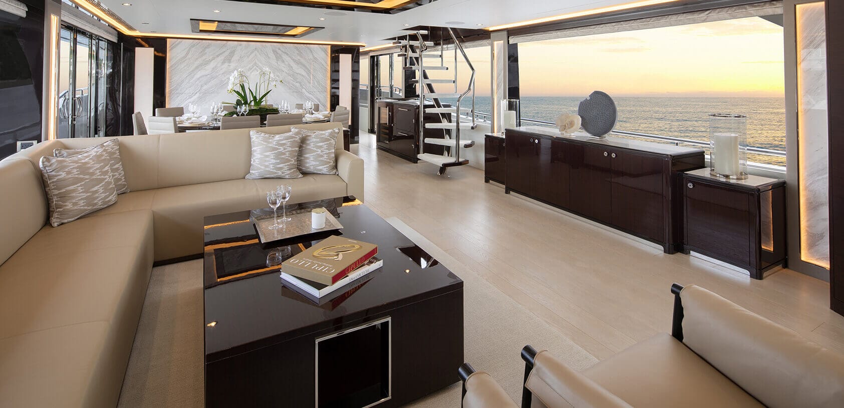 Following an extensive refit in 2022, led by designer Suzanne Lovell, both her exteriors and interiors were transformed to exceptional standards. The refreshed interiors embrace a sophisticated "Bahamas-esque" aesthetic, described as fresh, contemporary, and infused with a subtle oceanic theme.