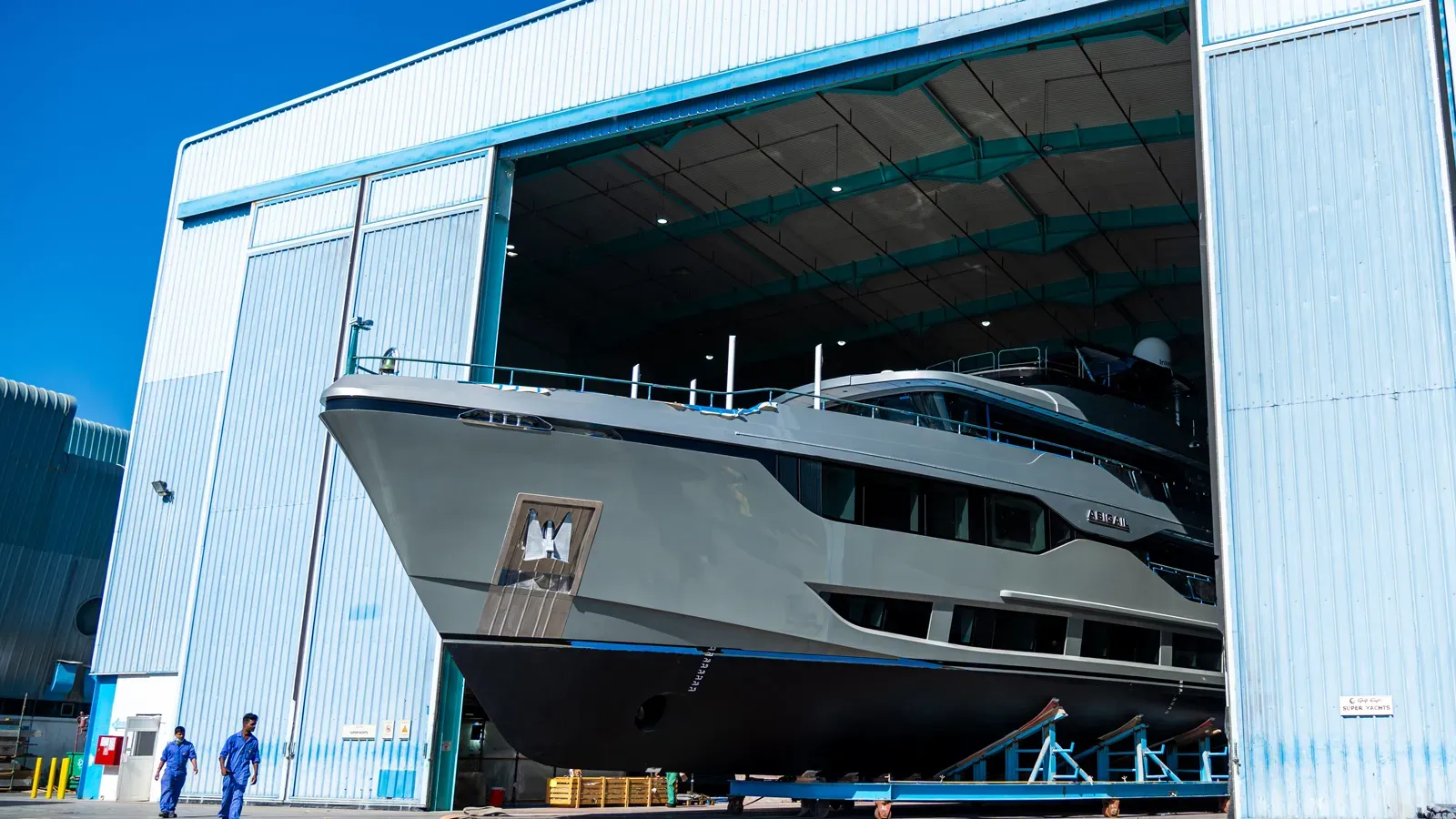 Majesty Yachts, a brand of Gulf Craft, has launched the fifth unit in its Majesty 120 series, named Abigail. This 37.5-meter superyacht features a custom "Liquid Silver" and "Futura Dark Grey" exterior. Scheduled for delivery in late 2024, Abigail will make her U.S. debut at the Palm Beach International Boat Show 2025. Notable features include a full-beam master suite and a beach club that doubles as a tender garage.