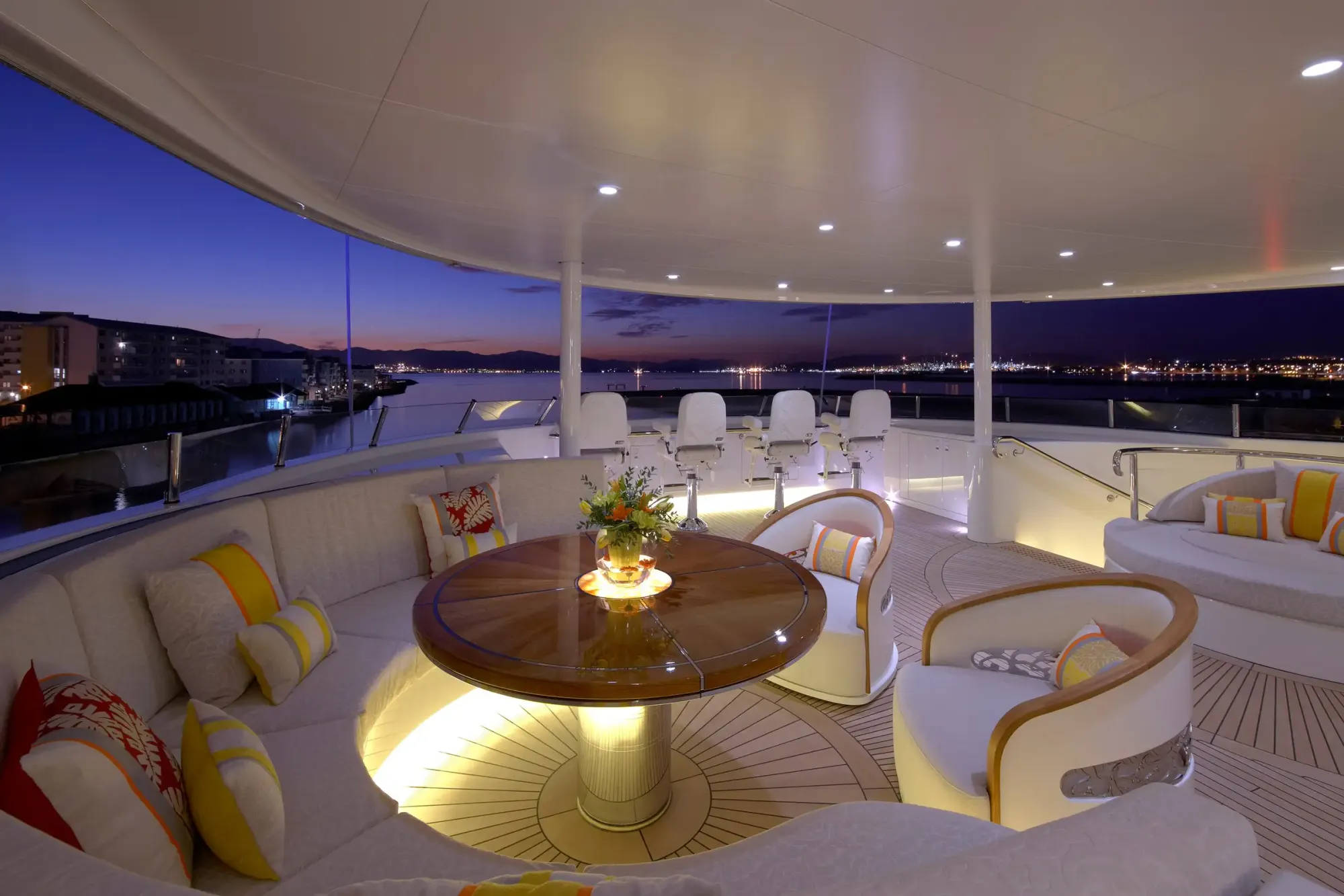 A favorite among charter guests, Bold is designed for adventure without sacrificing indulgence. She accommodates up to 12 guests, offering an array of standout features, including an outdoor cinema, an eight-person Jacuzzi, and a Teppanyaki grill for exquisite onboard dining. Guests can also unwind in the yacht’s elegant lounge, complete with a fire pit for intimate gatherings.