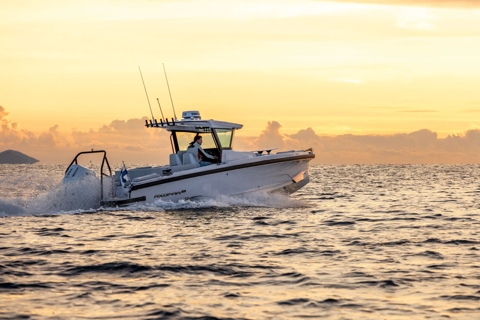 The Finnish ingenuity of Axopar 29 CCX continues to break boundaries, designed to leap forward in adventure boating. With customizable options including live wells, rod holders, and even trolling motor prep, the Axopar 29 CCX can be tailored to your every angling whim. The sleek and efficient twin-stepped hull ensures an adrenaline-pumping top speed of 50 knots.
