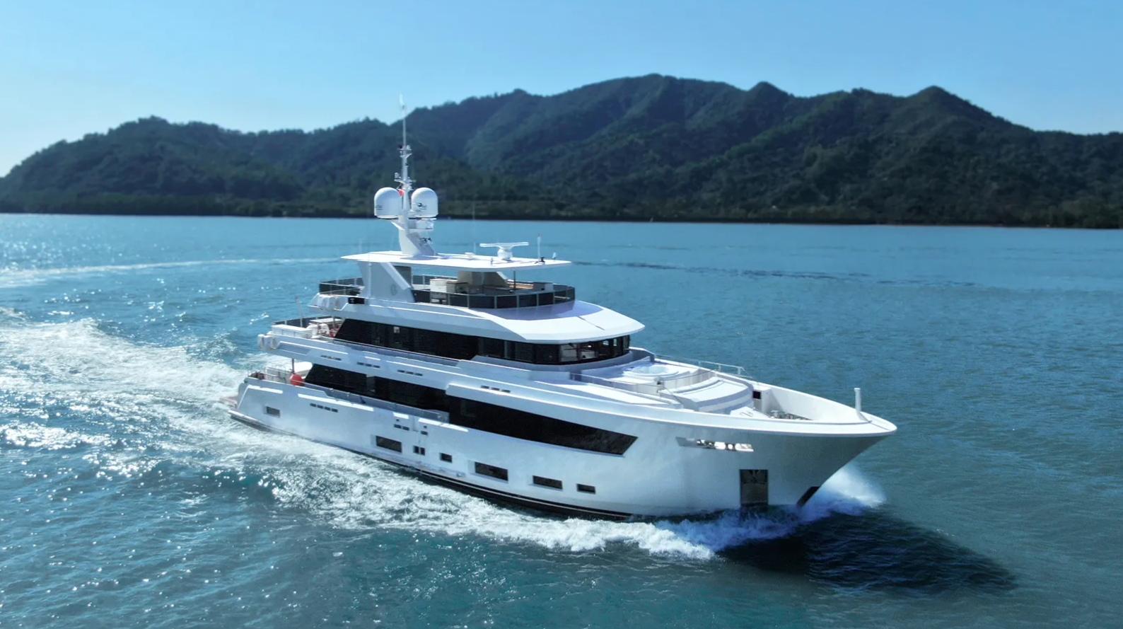 The first in Cheoy Lee’s new explorer line, Juanky is purpose-built for bluewater adventures. With design by Overing Yacht Designs, her rugged profile conceals elegant spaces, including a covered flybridge with bar, al fresco dining, and a foredeck Jacuzzi. A “cocktail skylounge” and generous toy storage emphasize her blend of endurance and lifestyle.