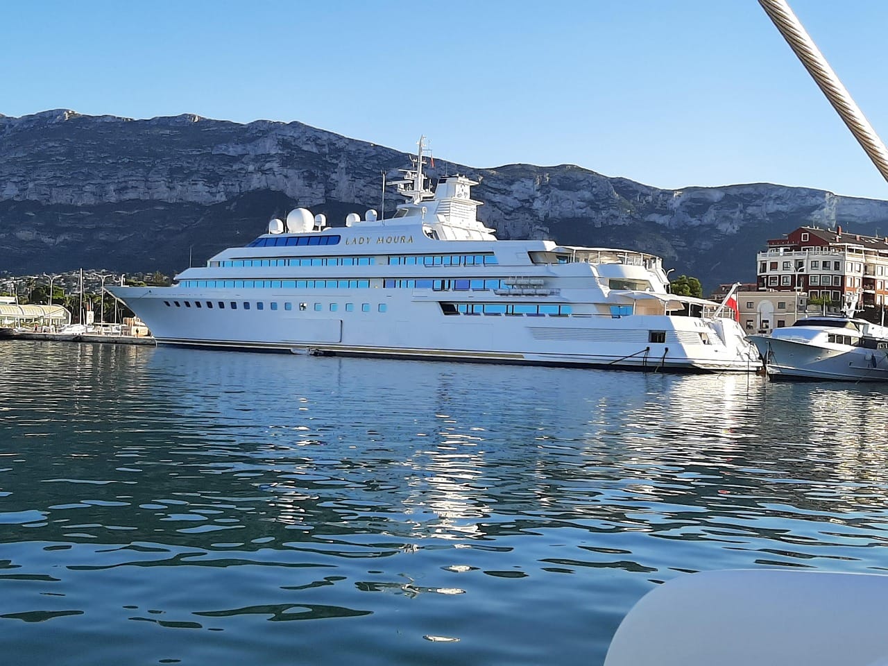 Superyachts Venus, L, and Lady Moura, R.
