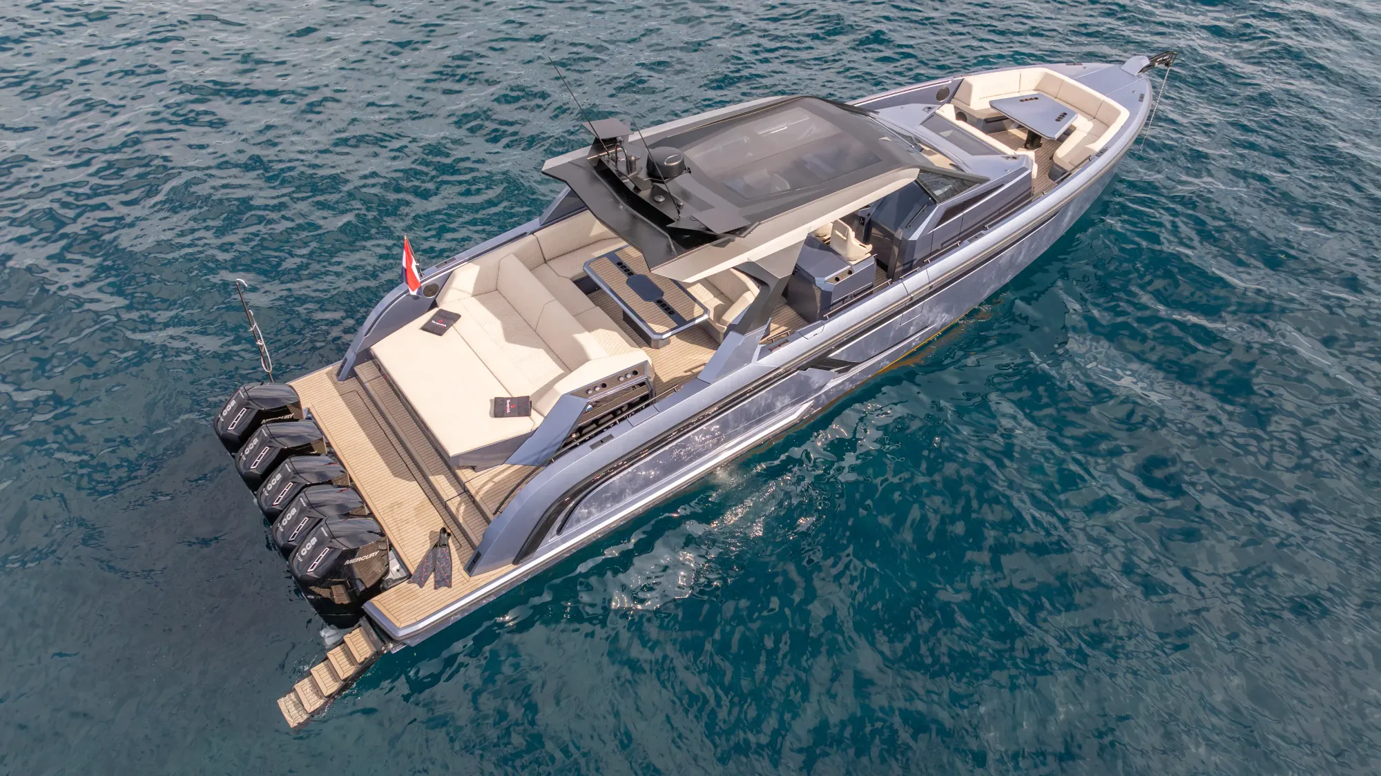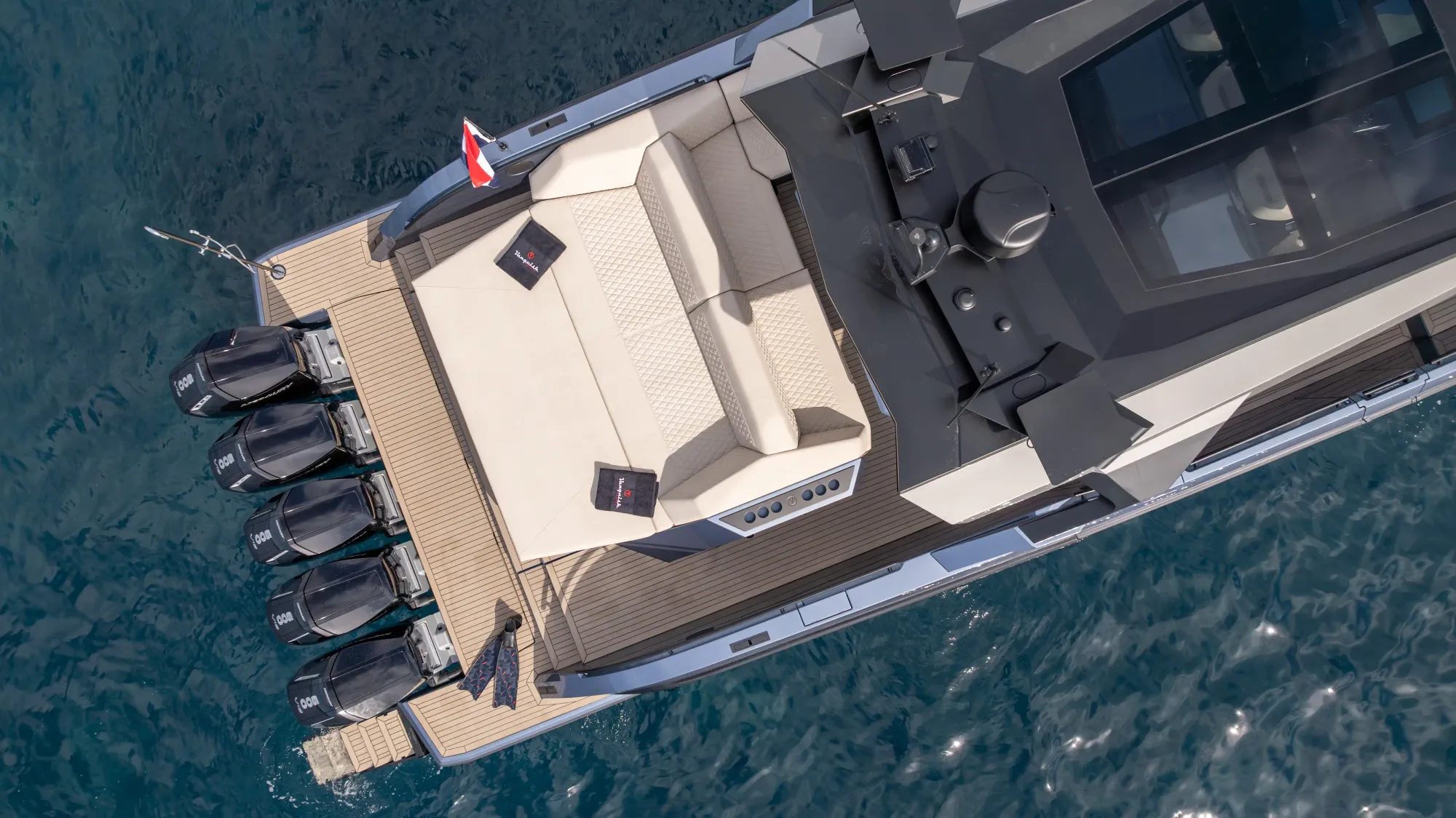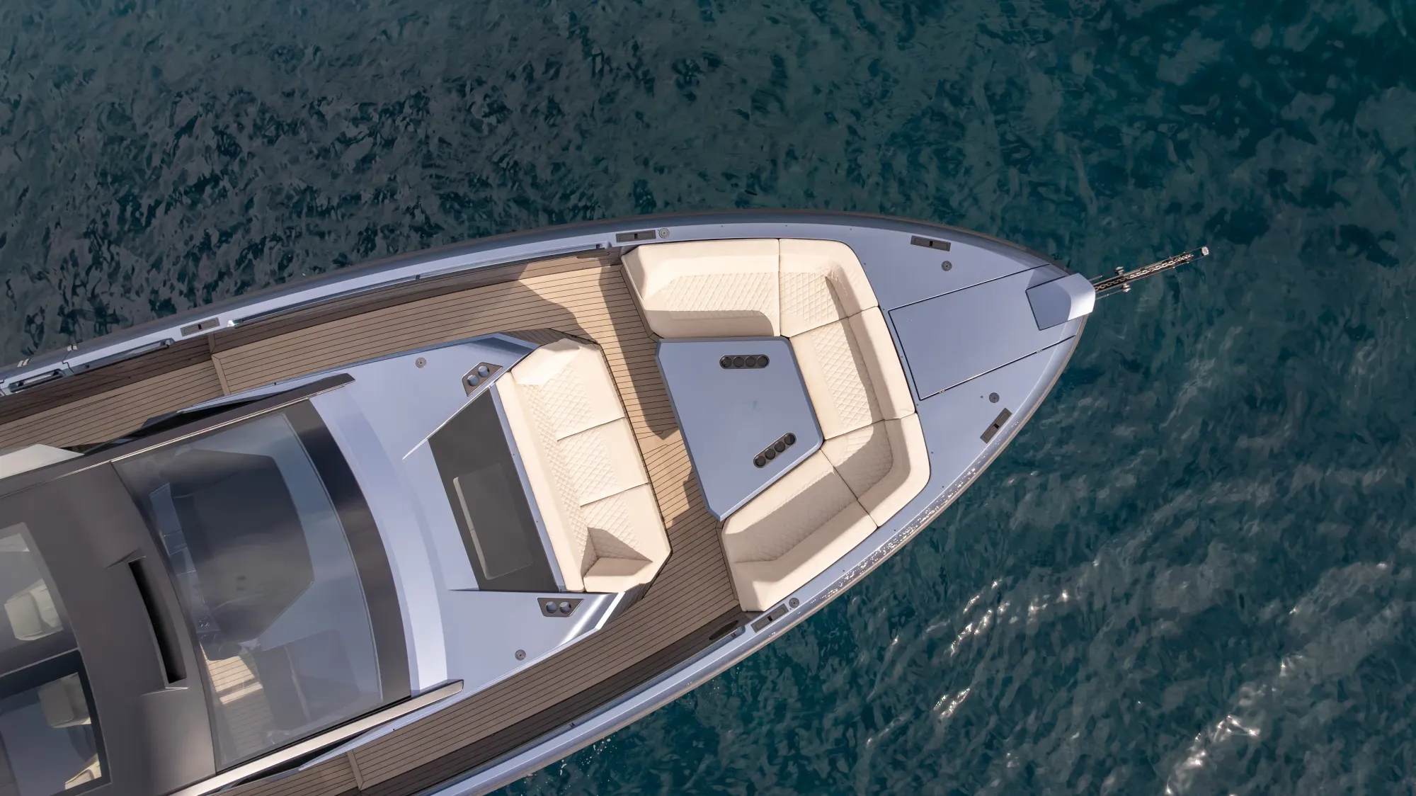 The VQ55 redefines speed and performance in its class. In the US market, it achieves an exhilarating 70+ mph with its quint Mercury 600 hp (V12) outboards. Meanwhile, the twin Nanni N16 1200 hp (V8) inboards offer a smooth 50 knots, perfect for Mediterranean cruising.